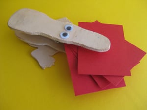 Handig om papier bij elkaar te houden. Gemaakt met een wasknijper met daarop een eigen ontworpen van hout. Jouw model gaan wij overnemen op hout. Daarna gaan aan de slag met figuurzagen, schuren en verven. Leuk voor vader- of moederdag.